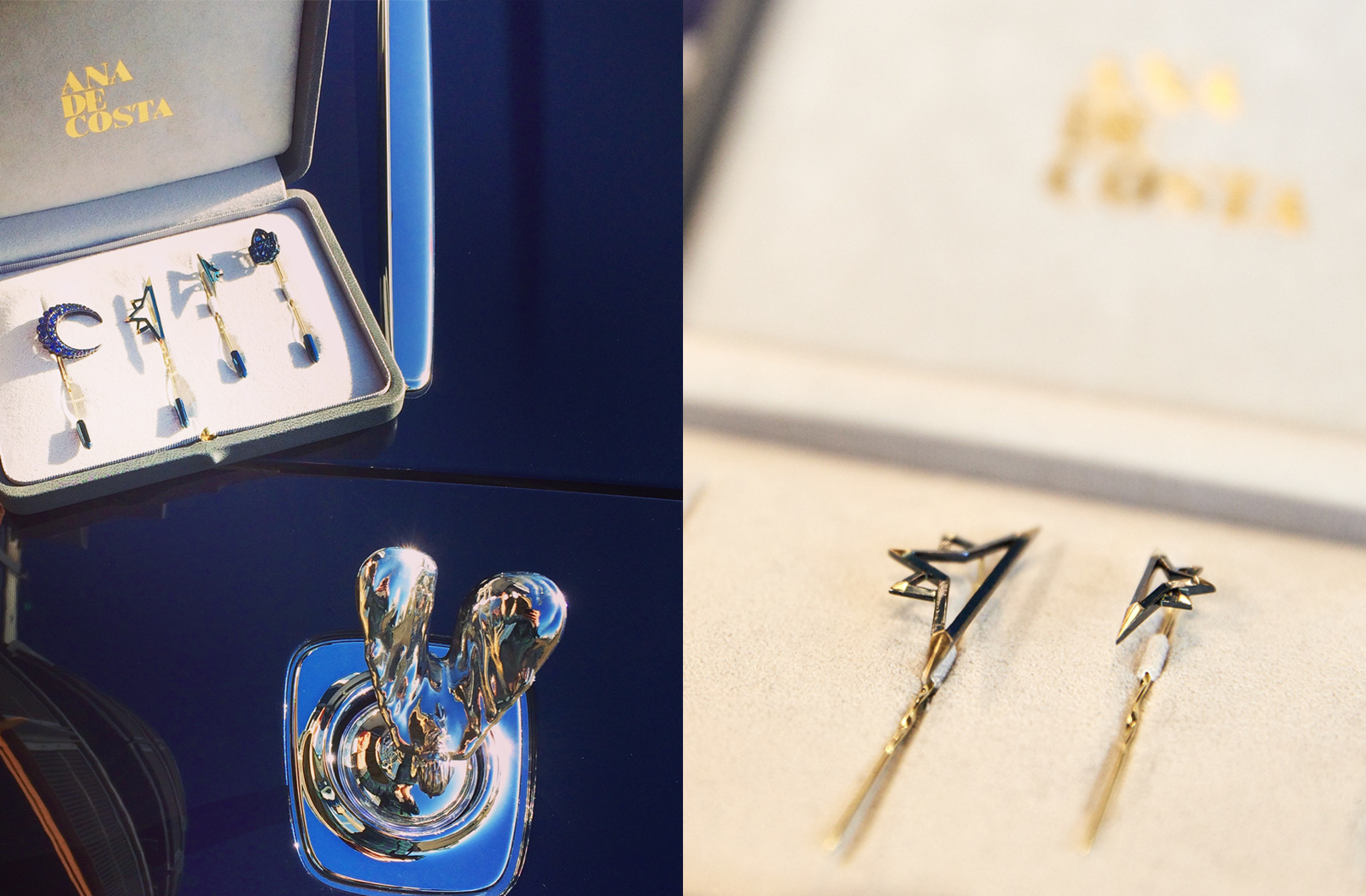 Ana was invited to collaborate on a series of special events which were to be hosted at Rolls-Royce's HQ in Goodwood. The events were designed to inspire and encourage clients to consider the lifestyle around the brand. Ana designed and crafted a series of unique bespoke lapel pins, exclusively for Rolls-Royce. Crafted from 18ct yellow gold and set with electric blue sapphires, the pins, which are further enhanced by the unusual blue gold lacquer, are striking.