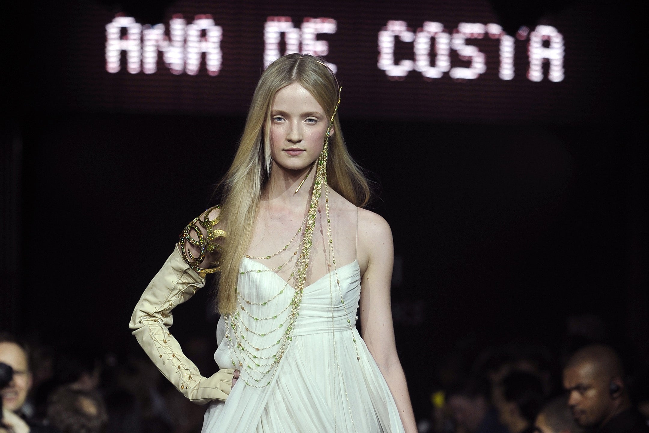Ana De Costa made her catwalk debut with Swarovski at the high profile 'Runway Rocks' show, in collaboration with Coutts, for the first London Jewellery week at the Phillips De Pury Gallery. She designed a body piece for Swarovski inspired by Art Noveau tarot cards, translating the art work of a specific tarot card directly into the body piece she created.