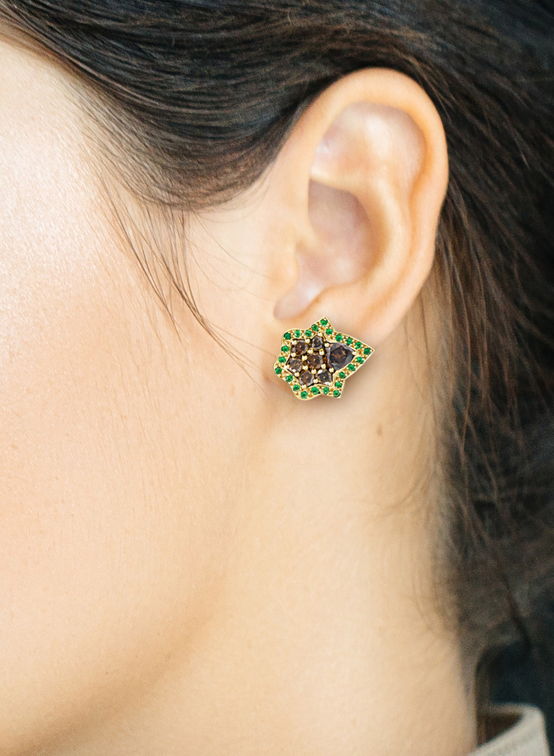 Spiritual Henna 18ct yellow gold tsavorite and cognac diamond earrings